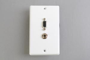 中継AVコンセント(白色塗装ステンレスプレート型、VGA映像+音声用、壁面埋込タイプ)【在庫限り販売中止】●ミニDsub15ピンのアナログRGB(VGA)映像信号と、3.5mmステレオミニプラグのアナログ音声を同時に中継配線できるコンセントプレート(AVコンセント)です。 |