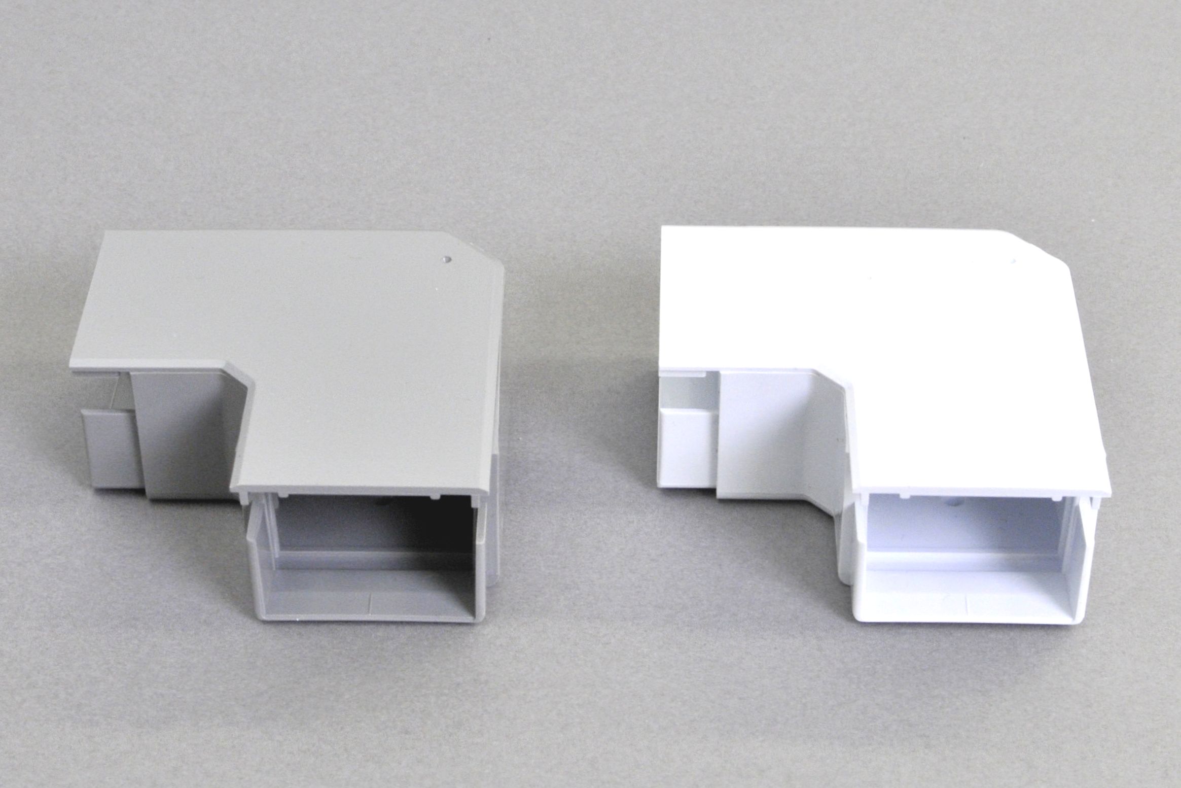 ●コンセントチップ対応配線ダクト(エムケーダクト)の内曲がり、外曲がり兼用で直角接続に使用します。