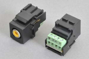 スナップイン中継コネクタ 3.5mmステレオミニジャック(メス)【在庫限り販売中止】●ステレオ音声信号の伝送で標準的な3.5mmステレオミニプラグの配線に使用するスナップイン中継コネクタです。 |