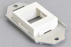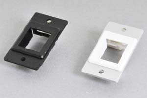 パネルマウントベゼル : スナップイン中継コネクタ専用パネル取付具 【樹脂ベゼル+ネジ取付アルミパネルのセット品】●スナップイン中継コネクタやスナップイン中継ケーブルを、装置や家具などの任意のパネル板に取り付ける際に便利なパネルマウントベゼルです。 |