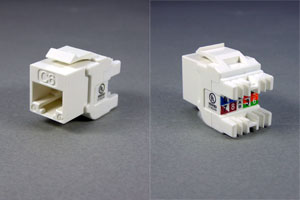 スナップイン中継コネクタ RJ-45メス(圧接部Lアングルタイプ、LAN配線用、CAT6対応) 【在庫限りで後継品へ切替予定】●カテゴリ6までのLANケーブルを接続するスナップイン中継コネクタです。 |